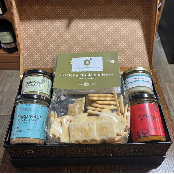 Nos coffrets gourmands sont composés de produits artisanaux soigneusement sélectionnés : terrines, biscuits, chocolats, confitures, miels, vins, apéritifs, et bien d’autres trésors du terroir français. Chaque composition est pensée pour ravir les papilles des épicuriens !