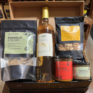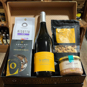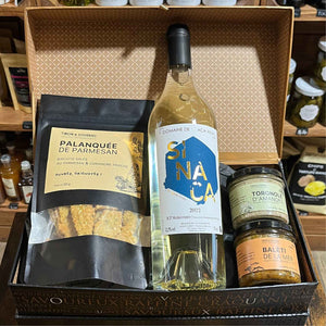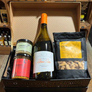 Unsere Gourmet-Geschenkboxen enthalten sorgfältig ausgewählte handwerkliche Produkte: Terrinen, Kekse, Schokolade, Marmeladen, Honig, Weine, Aperitifs und viele weitere Schätze aus dem französischen Terroir. Jede Komposition ist darauf ausgelegt, die Geschmacksknospen von Feinschmeckern zu erfreuen!