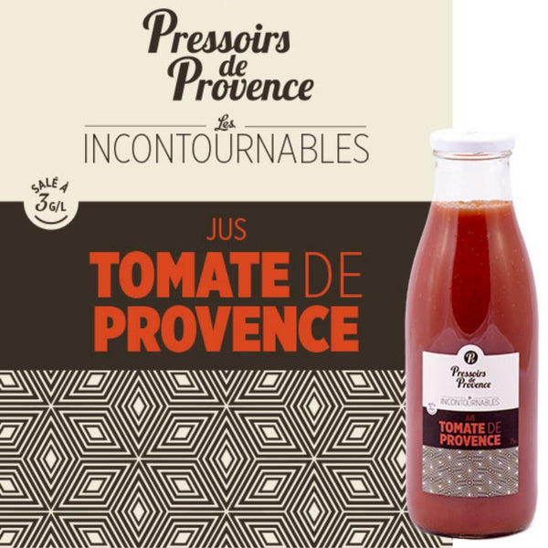 Entdecken Sie den Provence-Tomatensaft von Pressoirs de Provence , ein Geschmackserlebnis der Tomate von einst. Die sorgfältig ausgewählten Tomaten werden nach dem Genuss der provenzalischen Sonne vollreif geerntet, geerntet, gepresst und sofort in Flaschen abgefüllt, um ihre Vitamine und Mineralien bestmöglich zu erhalten. Dieser Tomatensaft bietet Ihnen den einzigartigen Geschmack provenzalischer Tomaten. Ideal als Aperitif mit Selleriesalz oder zur Zubereitung alkoholischer Cocktails – dieser Tomatensaft wird all Ihren Gästen schmecken.