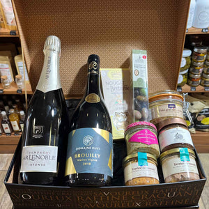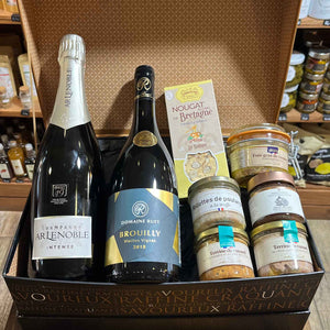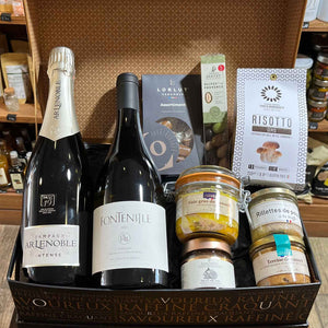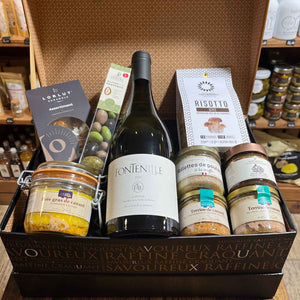 Our gourmet gift boxes feature carefully selected artisanal products: terrines, biscuits, chocolates, jams, honey, wines, aperitifs, and many other treasures from the French terroir. Each composition is designed to delight the taste buds of epicureans!