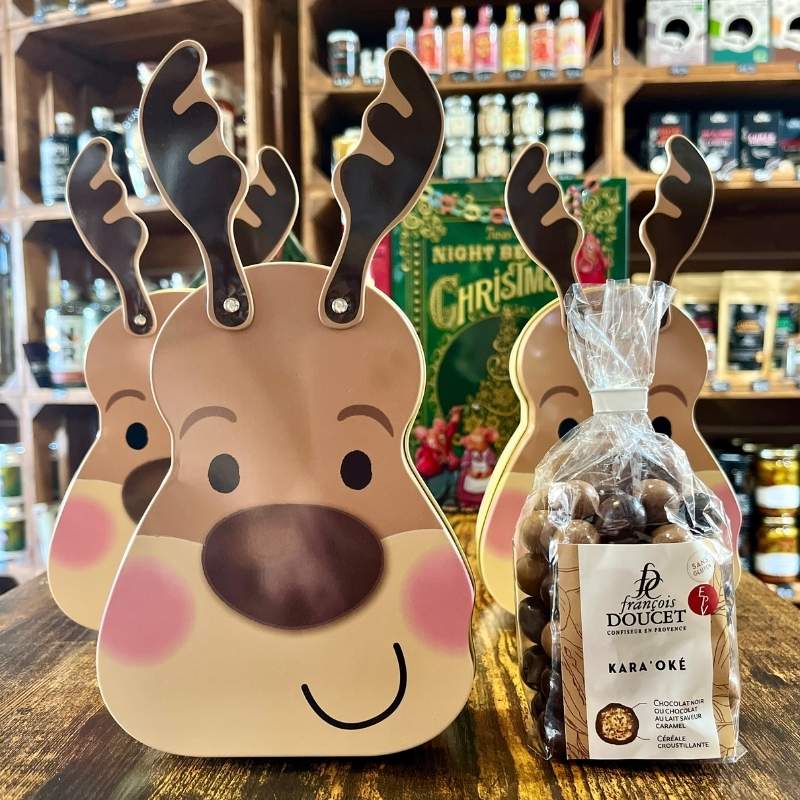 This beautiful Christmas Reindeer Metal Tin is filled with 100g of chocolates François Doucet Karaoke . This tin box to fill is very elegant and very original, this one Will delight young and old alike for the end-of-year celebrations. Guaranteed effect! Box dimensions: 14.8 cm x 11.5 cm x 6.0 cm