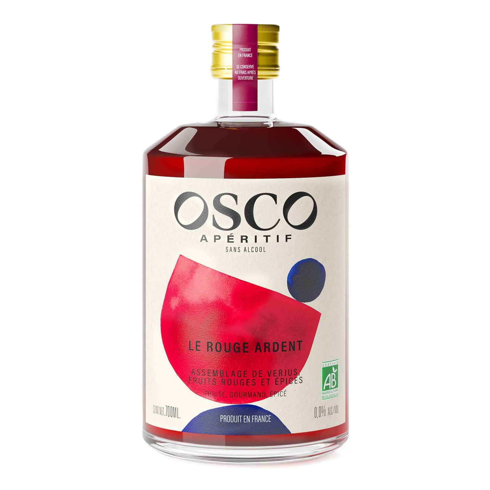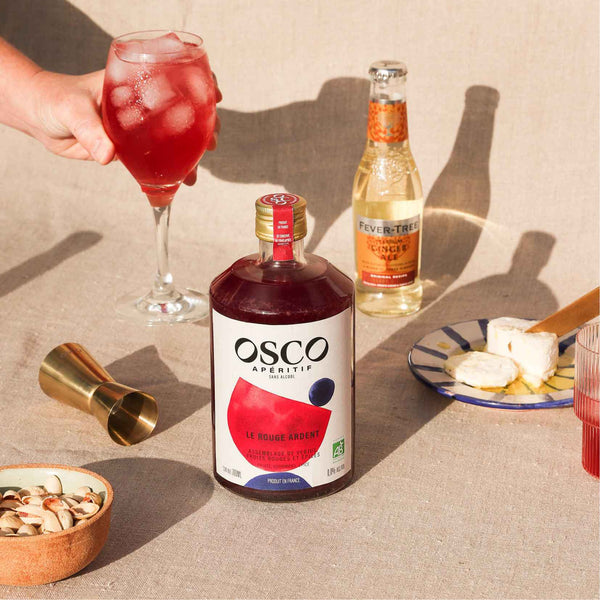 Rediscover the full experience of an aperitif without a drop of alcohol. Fresh, fruity and spicy, OSCO Le Rouge Ardent pairs perfectly with a sunny aperitif. Produced in France and certified organic , it is the result of winemaking expertise. OSCO captures the flavors of the south in a fresh and spicy aperitif: a delicate attack on the palate thanks to verjuice, the roundness of red fruits, enhanced by a blend of spices, including ginger. Low in calories and natural, OSCO pairs perfectly with tonic water or ginger beer. OSCO, the aperitif rich in flavors, to experience real emotions and share moments of pleasure.