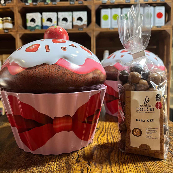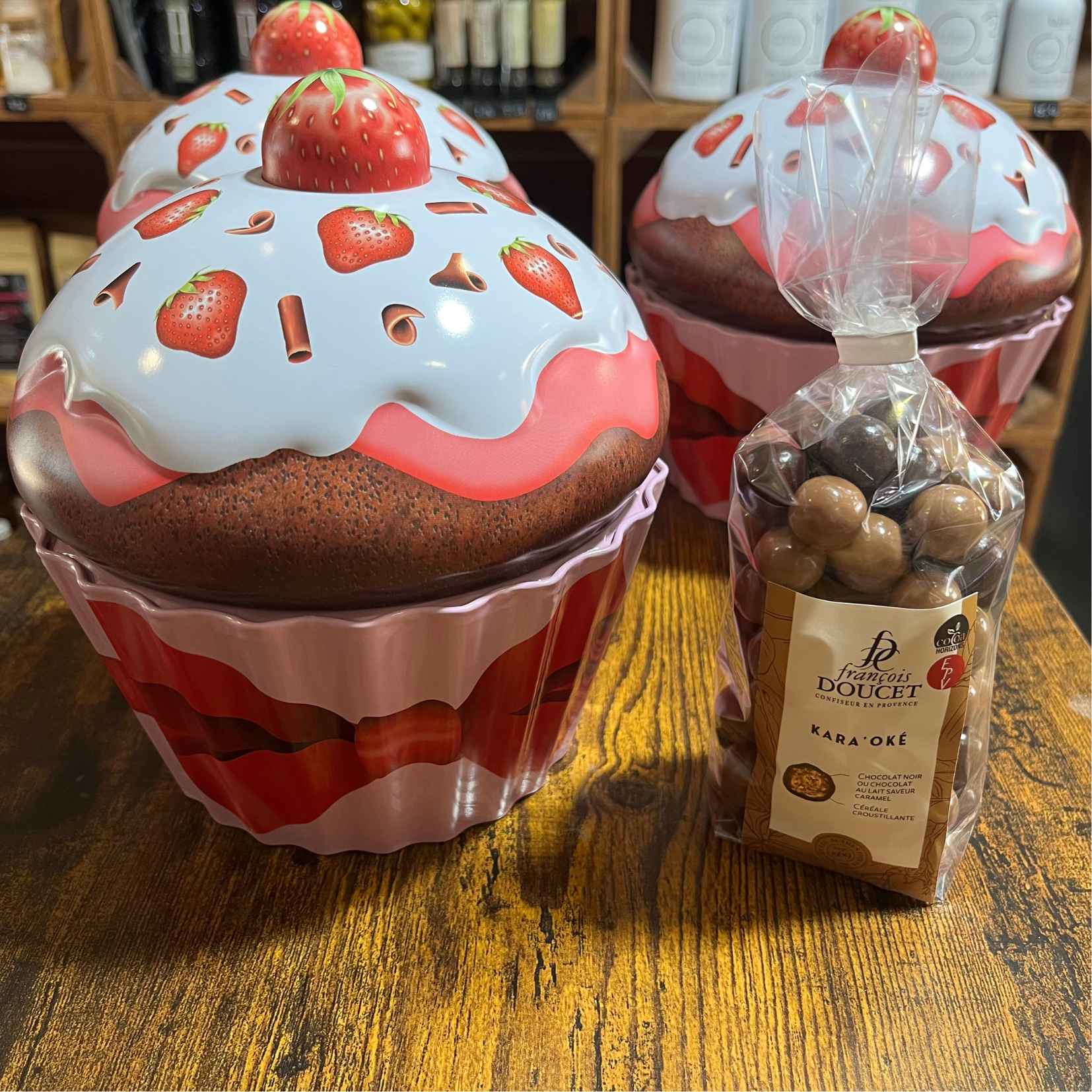 This beautiful Strawberry Cupcake Tin is filled with 200g of François Doucet Karaoke Chocolates . This elegant and highly original gift will delight young and old alike for any occasion. Guaranteed to be a hit!