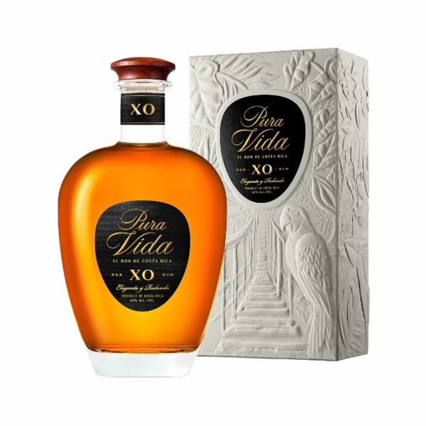 Looking for an exceptional XO rum? Discover Pura Vida . This is an exceptional Costa Rican rum, made from a rare blend of pure juice rums, cane honey, and molasses. Aged in bourbon barrels in Costa Rica and then refined in France in old Cognac barrels, it reveals a rich, complex, and silky profile, balanced between sweetness and spice. Presented in a carafe with an eco-friendly case made from recycled bagasse, this premium rum reveals aromas of crème brûlée, gingerbread, banana, and flambéed pineapple. Enjoy neat or on ice.