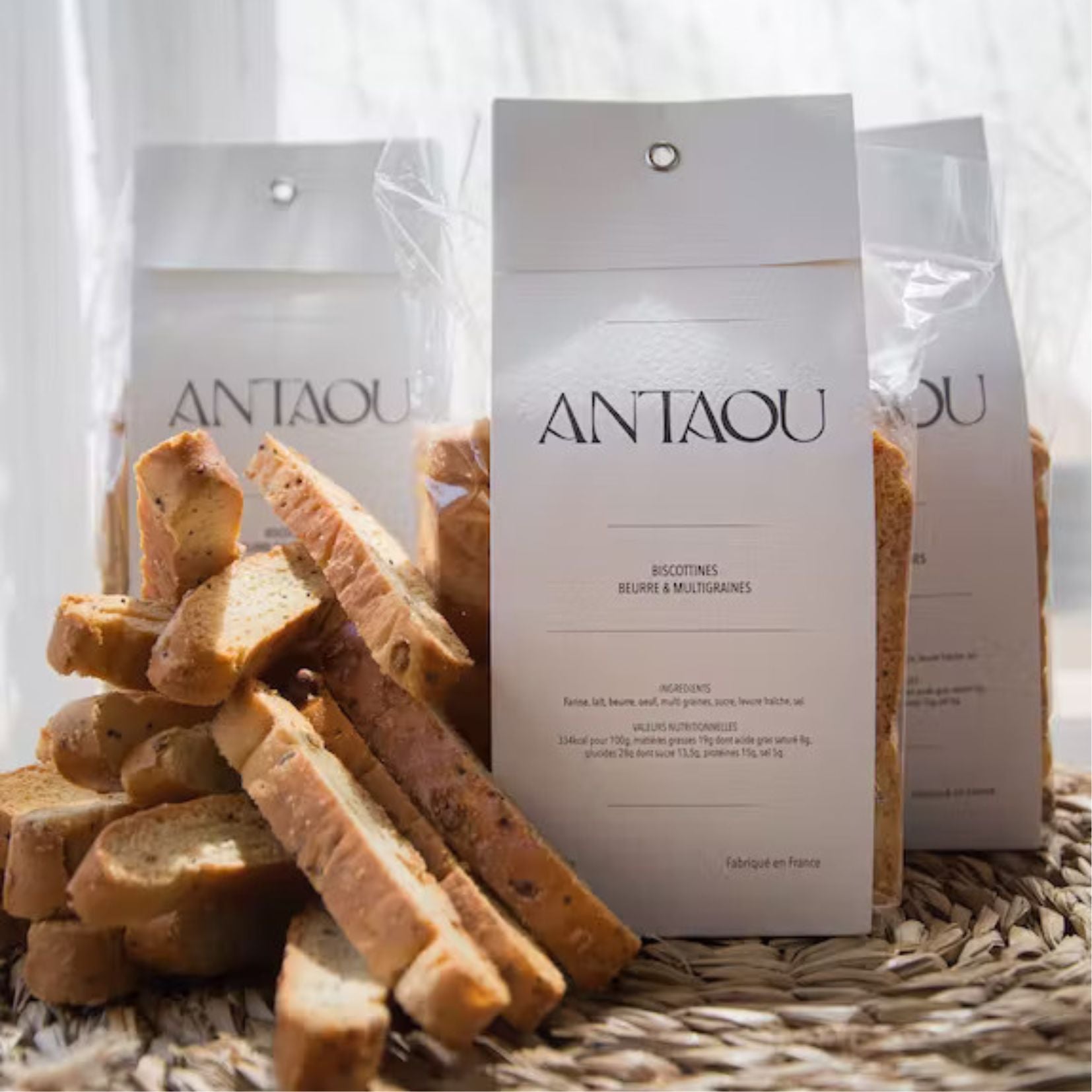Parce que toutes les marques vous proposeront des gressins, Antaou crée des biscottines ! Légèrement beurrées et croustillantes, n’hésitez pas à les tremper dans les différents tapas d'Antaou pour sublimer vos apéritifs ! A déguster sans modération !
