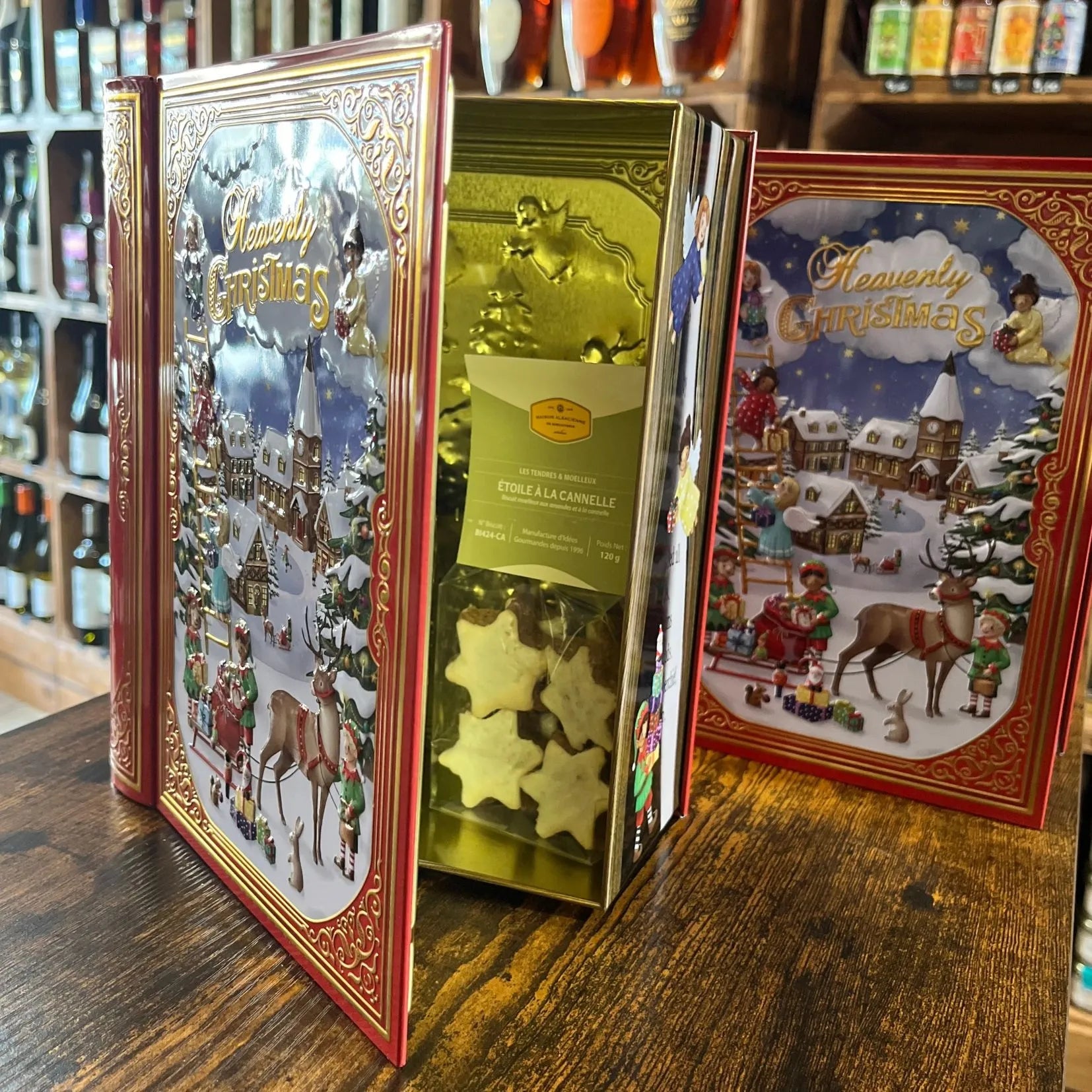 Boîte Métallique Livre Noël Village - Chocolats et Étoiles à la Cannelle