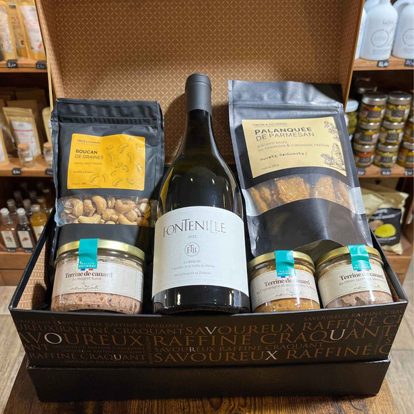 Nos coffrets gourmands sont composés de produits artisanaux soigneusement sélectionnés : terrines, biscuits, chocolats, confitures, miels, vins, apéritifs, et bien d’autres trésors du terroir français. Chaque composition est pensée pour ravir les papilles des épicuriens !