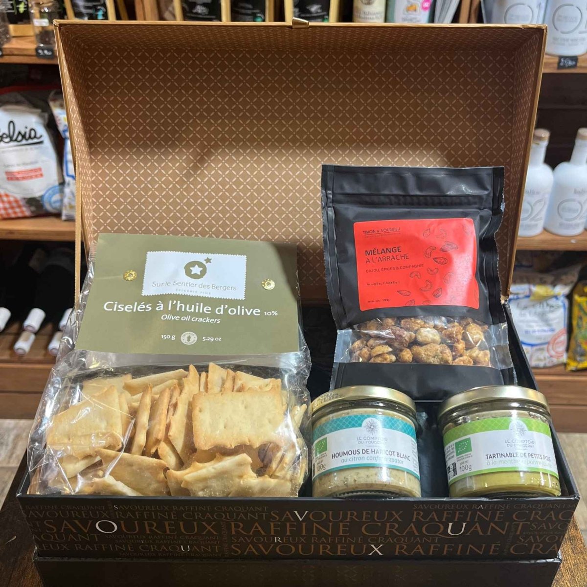 Nos coffrets gourmands sont composés de produits artisanaux soigneusement sélectionnés : terrines, biscuits, chocolats, confitures, miels, vins, apéritifs, et bien d’autres trésors du terroir français. Chaque composition est pensée pour ravir les papilles des épicuriens !