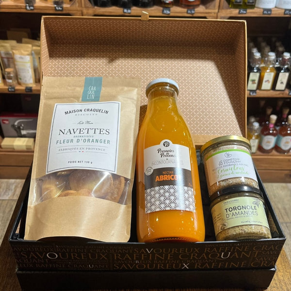Nos coffrets gourmands sont composés de produits artisanaux soigneusement sélectionnés : terrines, biscuits, chocolats, confitures, miels, vins, apéritifs, et bien d’autres trésors du terroir français. Chaque composition est pensée pour ravir les papilles des épicuriens !