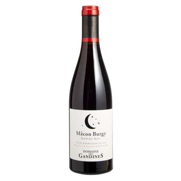 Ce Mâcon-Burgy du Domaine Des Gandines est issu de vieilles vignes de Gamay Noir cultivées en Agriculture Biologique et Biodynamique, en conversion Demeter et Ecocert. Les vignes de 90 ans sont situées sur un plateau calcaire à 400 m d'altitude avec une exposition nord Est. Les raisins ont été récoltés à la main, le vin est vinifié à la Bourguignonne en vendange égrappée ﴾cuvaison de 10 jours﴿ sans sulfites ajoutés. Le vin a été élevé 18 mois sur lies en cuve inox. En bouche, le vin est aromatique et intense avec une texture juteuse et des tanins souples et subtils. La minéralité est également présente, apportant une bonne intensité et une longue persistance. Les tanins sont fins et soyeux, offrant une souplesse rafraîchissante à l'ensemble. On peut percevoir des notes pâtissières, de fruits rouges et d'épices qui viennent compléter l'expérience gustative.
