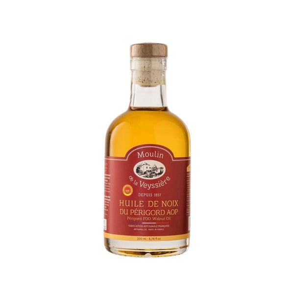 L’huile de noix du Périgord AOP, ou or jaune du Périgord, est un produit emblématique de la région. Particulièrement appréciée pour ses qualités nutritionnelles, Oméga 3 et Oméga 6, l'huile est fabriquée grâce à un savoir-faire ancestral ancré dans la famille du Moulin de la Veyssière depuis 1857. Ses acides gras polyinsaturés en font une huile bonne pour la santé qui saura sublimer vos plats ainsi que vos assaisonnements ! Sans additifs ni conservateurs.