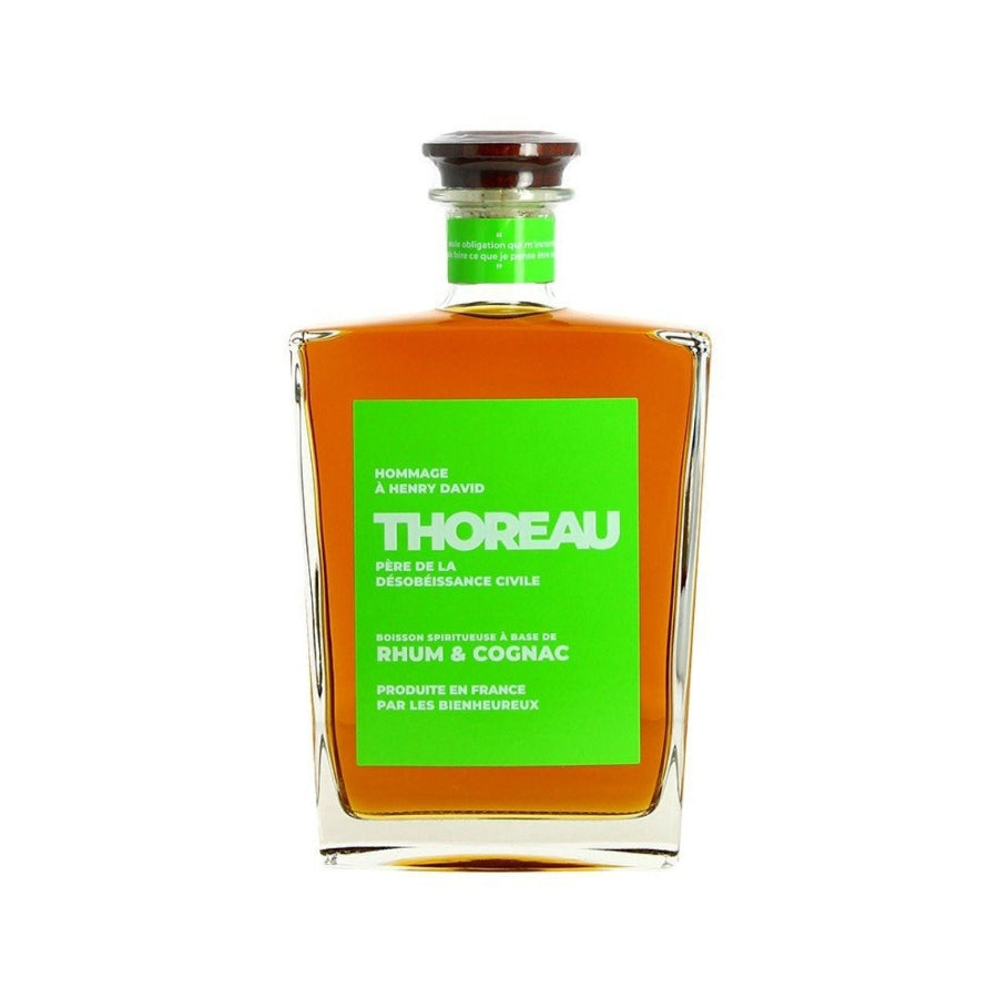 Thoreau c'est l’assemblage inédit d'un Rhum guatémaltèque et d'un Cognac V.S.O.P. Un hommage adressé au philosophe, poète et naturaliste américain du 19ème siècle : Henry David Thoreau. Connu pour ses écrits sur la liberté de création, Thoreau illustre très bien cette philosophie. Son design fluorescent et l’assemblage inédit contenu dans sa carafe ainsi que son hommage jusqu’à sa collerette où figure des citations du poète en font un produit d'exception. Les Bienheureux (Whiskys Bellevoye, Rhums El Pasador de Oro) viennent une nouvelle fois mettre en lumière le savoir faire français.